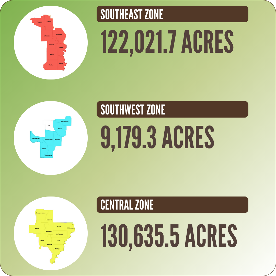 All zones, except the Delta, were brought into the program with a grower referendum. The Delta Zone was brought into the eradication program under the authority of the Arkansas State Plant Board (ASPB), when the ASPB and ABWEP entered into an agreement for ABWEP to operate the program in conjunction with the ongoing program procedures of the other zones.